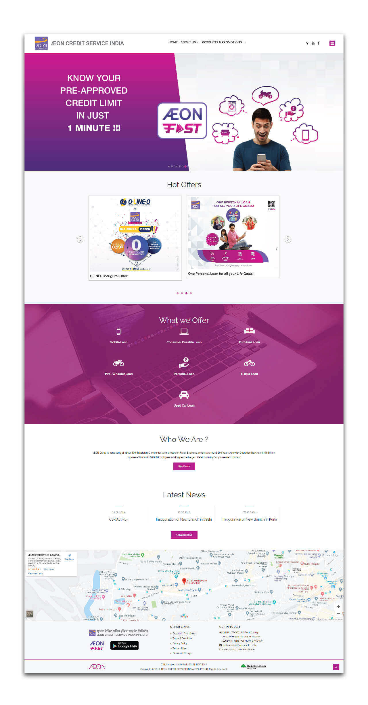 Aeon Credit Service India Private Limited is a finance company having presence across the globe. We were assigned to re-design their INDIAN WEBSITE. We implemented the best design practices in the market and created a seamless user experience for the customers. All the services along with the latest campaigns and offers were communicated in a manner that was both informative and engaging.