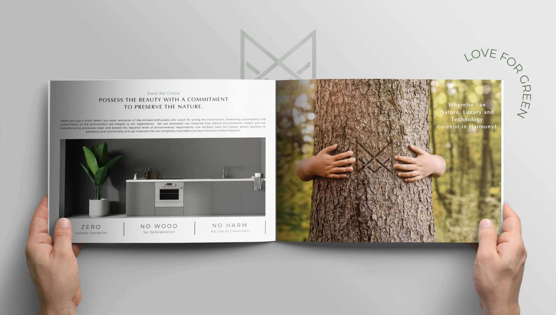 The logotype is inspired by Letter M and V in a minimal monogram. Clean design language of the typography reflects the contemporary and elegant characteristics of the brand.